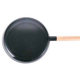 Its sturdy aluminum body ensures fast and even heat distribution, while the heat-resistant limewood-style handle provides a comfortable grip and adds a natural aesthetic touch.