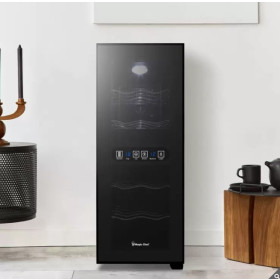 The Magic Chef Wine Cellar MEW-F12DB is a sleek, compact wine cooler designed for home use, capable of holding up to 12 standard wine bottles. It uses semiconductor cooling technology, provides independent dual temperature zones, and features a UV protection glass door. This wine cellar is ideal for wine enthusiasts seeking a stylish yet functional storage solution.