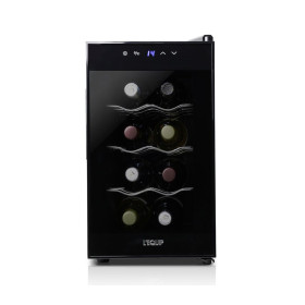 The Lequip LWC-EP801MG is a compact wine cellar designed to store up to 8 standard wine bottles in optimal conditions. Equipped with a semiconductor (thermoelectric) cooling system, adjustable temperature settings, UV-blocking glass door, and drawer-style shelving, it offers elegant and practical wine storage for home or small spaces.