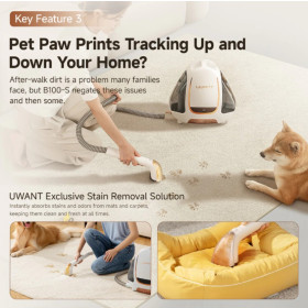 UWANT B100-S Spot Cleaner is an essential cleaning tool for any home, designed to effectively remove stains and dirt from carpets, upholstery, and other fabrics. This innovative spot cleaner features powerful suction, a variety of attachments, and a compact design, making it ideal for tackling spills and messes quickly and easily.