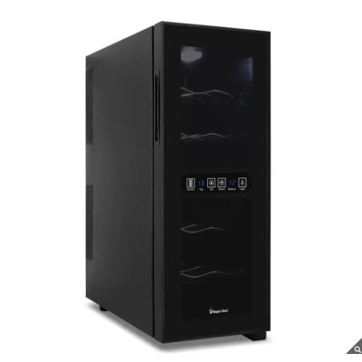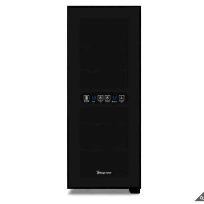 The Magic Chef Wine Cellar MEW-F12DB is a sleek, compact wine cooler designed for home use, capable of holding up to 12 standard wine bottles. It uses semiconductor cooling technology, provides independent dual temperature zones, and features a UV protection glass door. This wine cellar is ideal for wine enthusiasts seeking a stylish yet functional storage solution.