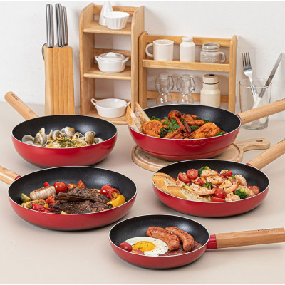 Product Two-Tone Red IH Frying Pan / Wok 5-Piece Set