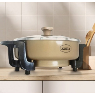 The Zaigle Party Cooker Golden Wood Edition (Model ZEC-A300) is a stylish multi-functional electric cooker designed specifically for dining-table use. With its elegant golden exterior and natural wood handle accents, this model brings premium aesthetics together with practicality. Ideal for cooking dishes like ramen, hot-pot, shabu-shabu and other communal meals directly at the table.